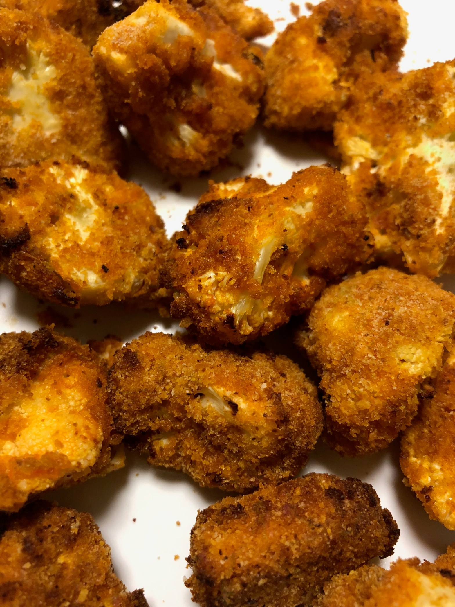 With Super Bowl LIV coming up in early February, I have started brainstorming new, healthy(ish) appetizer recipes for my Super Bowl party. Instantly, cauliflower “wings” came to mind. I have attempted to make cauliflower “wings” three times now with little success, but when I purchased an Air Fryer this month, I vowed to try again. This recipe brings cauliflower “wings” to a new level by utilizing delicious hot sauce as the primary ingredient while using bread crumbs to crisp up a normally mushy vegetable.