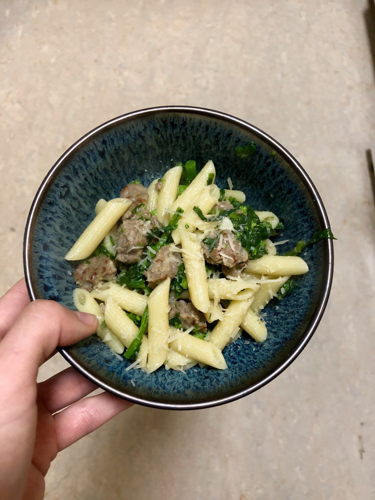 One of my favorite pasta dishes takes an underrated vegetable, broccoli rabe, and makes it the star of the dish. I present, broccoli rabe and sausage pasta. This recipe is based off of one of my favorites from A Beautiful Plate.